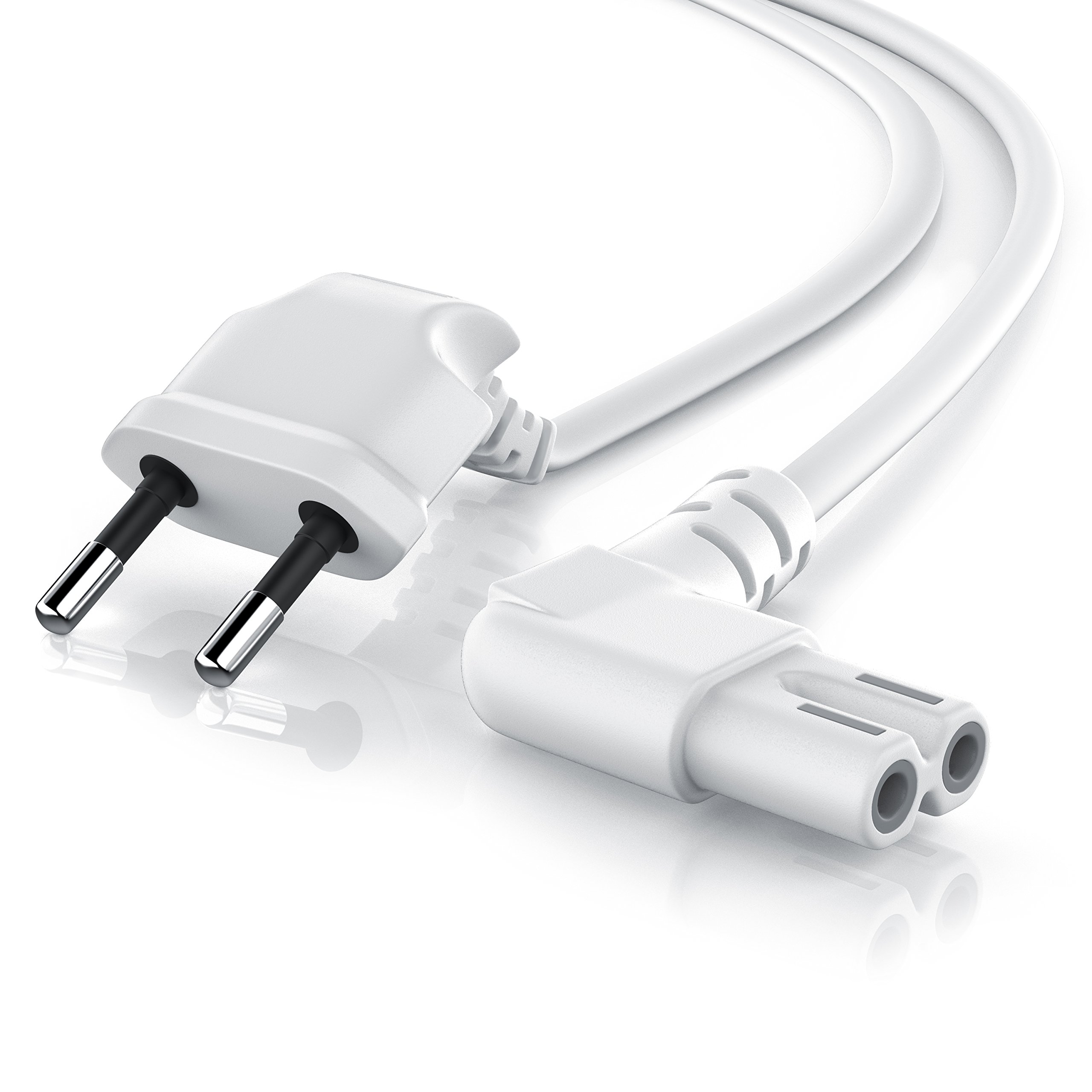 CSL - câble de raccordement Euro coudé aux Deux Bouts - fiche Euro vers connecteur pour Petits appareils - à 2 Broches - 3m - Blanc - pour Le d'ordinateurs Portables télévisions Lecteur DVD Blu-Ray